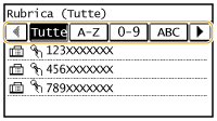 Visualizza le destinazioni con nomi dei destinatari che iniziano con le lettere corrispondenti a quelle della scheda selezionata.