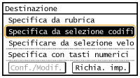 Selezione delle destinazioni immettendo direttamente numeri a selezione codificata
