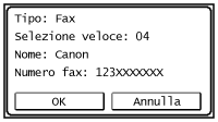 <Sì>.Se si è specificata la Selezione gruppo al passo 2, viene visualizzata l'indicazione "XX destinazione/i". Toccando Numero di destinazioni è possibile visualizzare le destinazioni registrate nel gruppo.