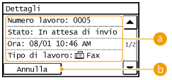 . È inoltre possibile annullare l'invio dei fax dopo aver controllato lo stato fax.