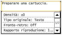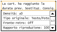Quando una cartuccia di toner è quasi vuota, la macchina visualizza un messaggio. Tenere presente che la qualità di stampa diminuisce se si continua a stampare senza prendere provvedimenti. È possibile controllare sul display il livello di toner residuo nella cartuccia.