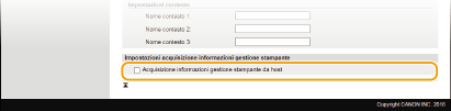 Specificare le impostazioni di acquisizione delle informazioni di gestione stampante.