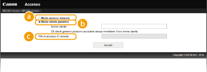 Se è impostato [PIN di accesso IU remota], immettere il PIN.
