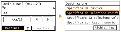 Agli indirizzi nella Rubrica vengono assegnati numeri a tre cifre (numeri a selezione codificata). È possibile specificare un indirizzo semplicemente immettendo il numero a selezione codificata corrispondente.