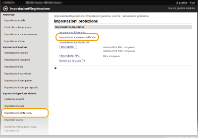 [Impostazioni chiave e certificato].