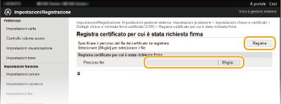 Fare clic su [Sfoglia], specificare il file per la richiesta CSR e fare clic su [Registra].
