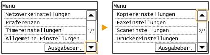 , um auf dem Bildschirm einen Bildlauf durchzuführen. Der Bildschirm ändert sich Seite um Seite, und die Seitennummer wird in der Bildlaufleiste angezeigt.