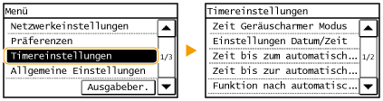 Informationen zum Wechseln des Bildschirms, der automatisch angezeigt wird, wenn am Gerät eine bestimmte Zeit lang keine Funktion ausgeführt wurde: