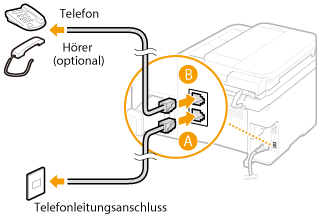 Wenn Sie ein externes Telefon mit Faxfunktionen anschließen, konfigurieren Sie am Telefon den manuellen Faxempfang.