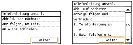 Tippen Sie auf <Weiter>, nachdem Sie das Gerät an die Telefonleitung angeschlossen haben.
