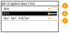 Wählen Sie diese Einstellung, wenn ein EM-Ergebnisbericht nur bei einem Empfangsfehler gedruckt werden soll.