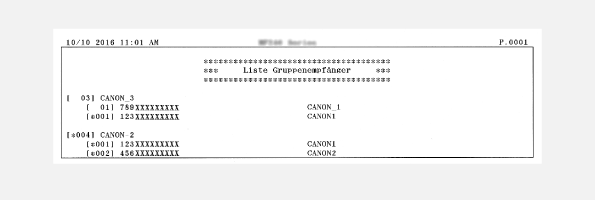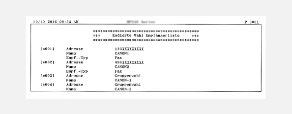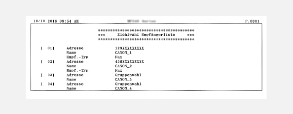 Sie können eine Liste der unter <Kodierte Wahl>, <Zielwahl> und <Gruppenwahl> im Adressbuch gespeicherten Empfänger drucken.