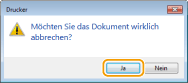 Abbrechen über eine AnwendungBei einigen Anwendungen wird ein Bildschirm wie der folgende angezeigt. Sie können den Druckvorgang abbrechen, indem Sie auf [Abbrechen] klicken.