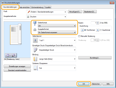 Wählen Sie das Papierformat in [Ausgabeformat]