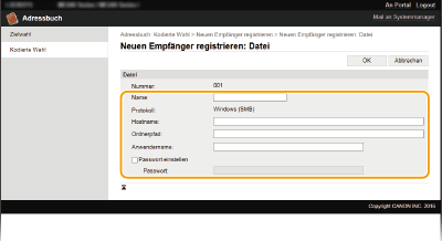 Sie können das Adressbuch des Geräts über den Computer speichern oder bearbeiten. Geben Sie hier den gemeinsamen Ordner als Empfänger an.