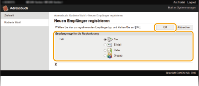 Wählen Sie [Empfängertyp für die Registrierung], und klicken Sie auf [OK].