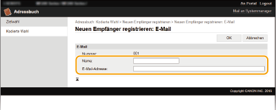 Faxeinstellungen ) auf dem Bedienfeld festlegen. Die über <Adressbuch> vorgenommenen Einstellungen werden jedoch für die detaillierten Einstellungen von im Adressbuch gespeicherten Empfängern aktiviert.
