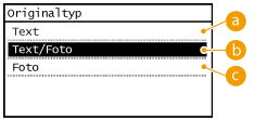 Sie können die Bildqualität für den Scan abhängig vom Dokumententyp auswählen, wie zum Beispiel Nur-Text-Dokumente, Dokumente mit Diagrammen und Grafiken oder Zeitschriftenfotos.