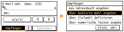 Zur Verwendung der kodierten Wahl muss der Empfänger vorab im Adressbuch gespeichert werden. Speichern von Empfängern im Adressbuch