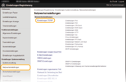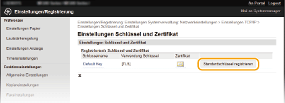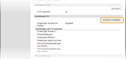 Verwenden des BedienfeldsSie können die Kommunikation mit TLS-Verschlüsselung auch über <Menü> auf dem Bildschirm <Startseite> aktivieren oder deaktivieren. TLS verwenden