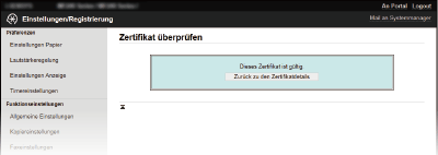 Klicken Sie auf [Sicherheitseinstellungen]  [Einstellungen Schlüssel und Zertifikat] oder [Einstellungen CA-Zertifikat].