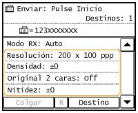 <Sí>.Si especificó Marcación por Grupo en el paso 2, aparecerá en la pantalla "XX destino(s)". Si pulsa Número de destinos, aparecerán los destinos registrados en el grupo.