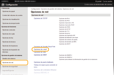 Utilice la IU remota para configurar las opciones detalladas de envío, como pueden ser las opciones para la autenticación de POP y el cifrado de la comunicación antes de enviar e-mails. Póngase en contacto con su proveedor o administrador de red para obtener la configuración necesaria.