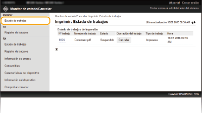 Puede eliminar un trabajo haciendo clic en [Cancelar].