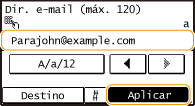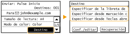 Cuando especifique varios destinos, el segundo destino y siguientes deberán estar guardados en la libreta de direcciones. En el campo CC/CCO solo se puede especificar destinos que estén guardados en la libreta de direcciones. Para utilizar la libreta de direcciones, deberá completar el procedimiento de guardado previamente.