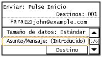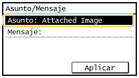 Introduzca el asunto utilizando las teclas numéricas y pulse <Aplicar>.