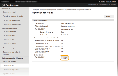 Para enviar e-mails directamente desde el equipo, deberá completar los preparativos de antemano, incluida la especificación de las opciones del servidor de correo. Configuración de las opciones de lectura (envío de e-mail)