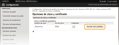 Haga clic en [Guardar clave prefijada] en la parte derecha del par de claves que desee utilizar para la autenticación del cliente.