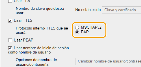 Podrá seleccionar MSCHAPv2 o PAP. Si desea utilizar PAP, haga clic en el botón de opción [PAP].