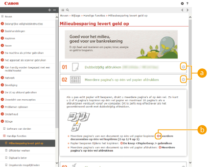 Klik hierop als u informatie wilt weergeven over hoe u de Gebruikershandleiding, hoe u een zoekopdracht uitvoert en andere informatie.