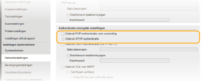 U kunt het wachtwoord instellen of wijzigen wanneer een POP3-server wordt gebruikt, door dit selectievakje in te schakelen en maximaal 32 alfanumerieke tekens in te voeren in [Wachtwoord].
