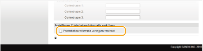 Schakel het selectievakje in om via SNMP de gegevens voor printerbeheer van het apparaat te bewaken. Als u geen printerbeheerinformatie wilt bewaken, schakelt u het selectievakje uit.