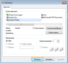 Tik of klik op [Afdrukken] in het toepassingsmenu het printerstuurprogramma voor dit apparaat [Afdrukken].Als u afdrukt volgens deze methode, is er slechts een beperkt aantal instellingen beschikbaar.
