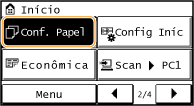 Pode configurar a máquina para apresentar apenas tamanhos de papel utilizados frequentemente no ecrã de seleção.