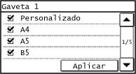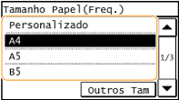 Os tamanhos de papel sem uma marca de verificação são mostrados no ecrã <Tam Papel (Outros Tam)>.
