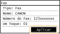 Introduza o destino utilizando as teclas numéricas e toque em <Aplicar>.