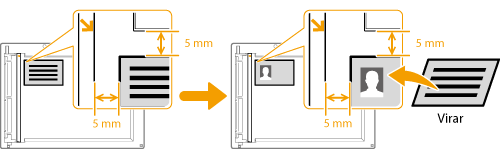 Pode utilizar <Cópia do Cartão ID> para copiar a frente e o verso de um cartão para o mesmo lado de uma página. Esta função é útil quando pretende copiar uma carta de condução ou um cartão de identificação.