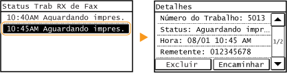 Os documentos guardados na memória também podem ser reencaminhados para um destino. Selecionar um documento para reencaminhar