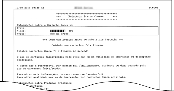 Pode verificar o estado dos consumíveis instalados na máquina.