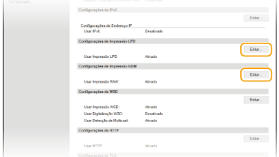 Clique em [Editar] em [Configurações de Impressão LPD] ou [Configurações de Impressão RAW].
