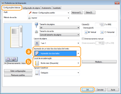 Selecione [Impressão de um lado] ou [Impressão dos dois lados] em [Impressão de um lado/dos dois lados/de livreto]