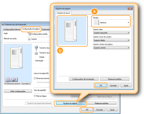 Pode adicionar limites, como linhas tracejadas ou linhas duplas, às margens das impressões.