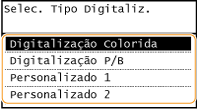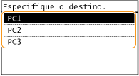 Digitalizar mais facilmente a partir da máquinaSe tiver preferências que utiliza frequentemente (por exemplo, digitalização a cores ou a preto e branco) ou um computador pré-determinado para guardar os documentos, poderá ser incómodo ter de especificar essas definições sempre que digitaliza um documento. Registe essas definições num botão <Scan -> PC> para poder digitalizar simplesmente premindo o botão. Existem dois botões <Scan -> PC>: <Scan -> PC1> e <Scan -> PC2>. Pode registar as suas definições em qualquer um desses botões. Digitalizar utilizando o botão <Scan -> PC>