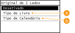 Selecione <Tipo de Livro> ou <Tipo de Calendário>