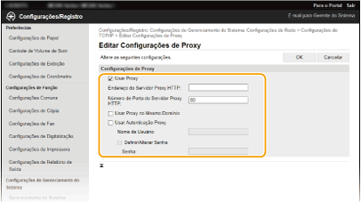 Selecione a caixa de verificação [Usar Proxy] e especifique as definições necessárias.