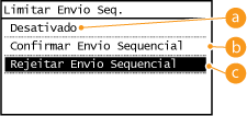 O envio sequencial é uma função que permite enviar faxes para vários destinatários sucessivamente. Se preferir, pode desativar esta função.